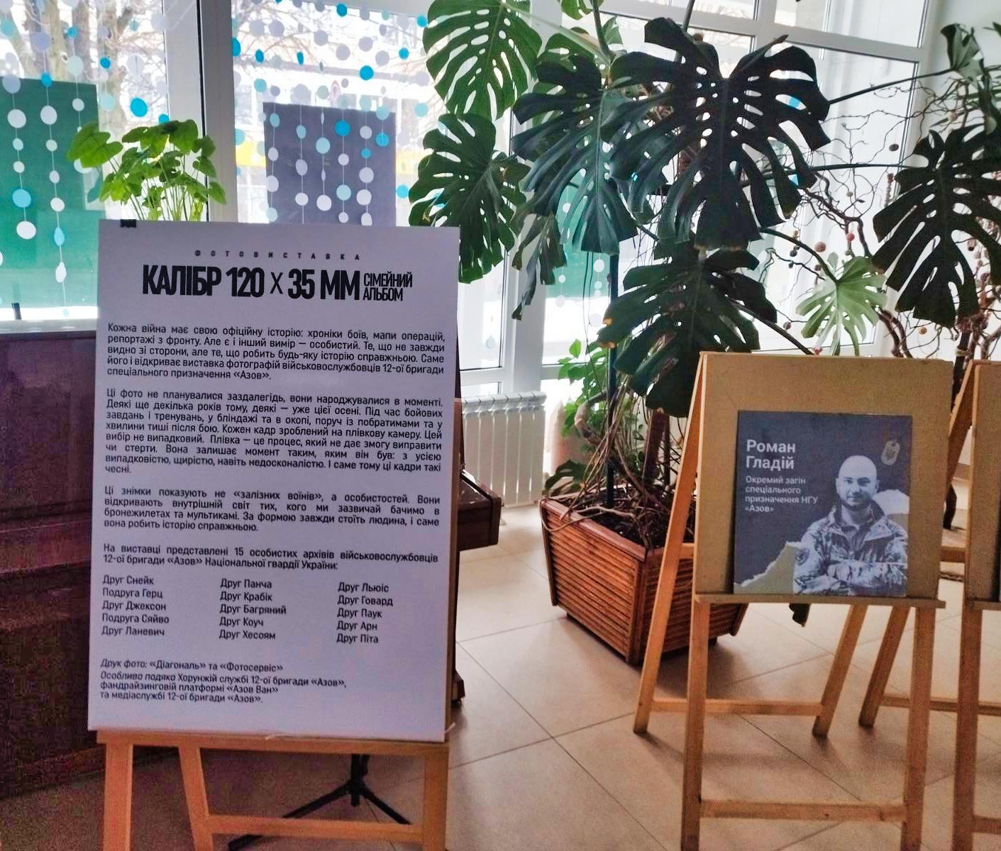 29 січня у Хмельницькому відкрито фотовиставку військовослужбовців 12-ї бригади «Азов» під символічною назвою «Калібр 120х35 мм. Сімейний альбом», приурочену до Дня пам’яті Героїв Крут. Експозиція розповідає про фронтовий побут, щоденне життя та внутрішній світ захисників України очима самих воїнів — через об’єктив, що фіксує не лише події, а й людські емоції, стійкість і віру в майбутнє.
